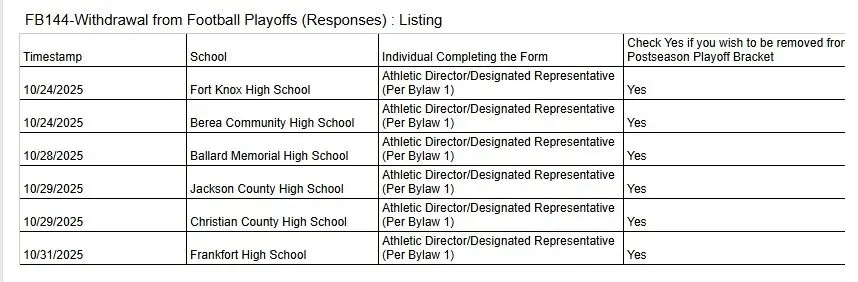 It cannot be the way that the Christian County Colonels players, coaches, administrators, and fans dreamed their final season would come to an end. As of Saturday morning, according to the KHSAA website, on the page where the organization lists teams that are withdrawing from the football playoffs, Christian County High School has notified the Kentucky High School Athletic Association that they will not be participating in the football postseason.
