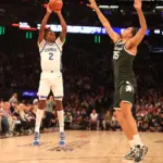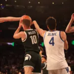 Jaxon Kohler, Trey Fort and Kur Teng combined for eight treys, with Fort and Teng connecting on three shots each from long range in the double-digit victory. Michigan State held a dominating 42-28 edge in rebounding.