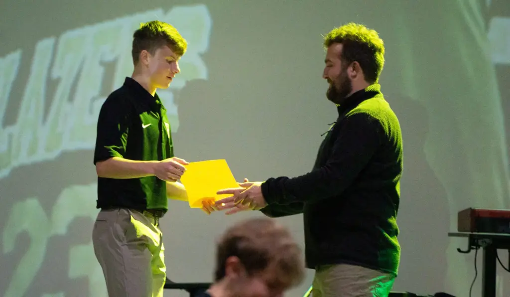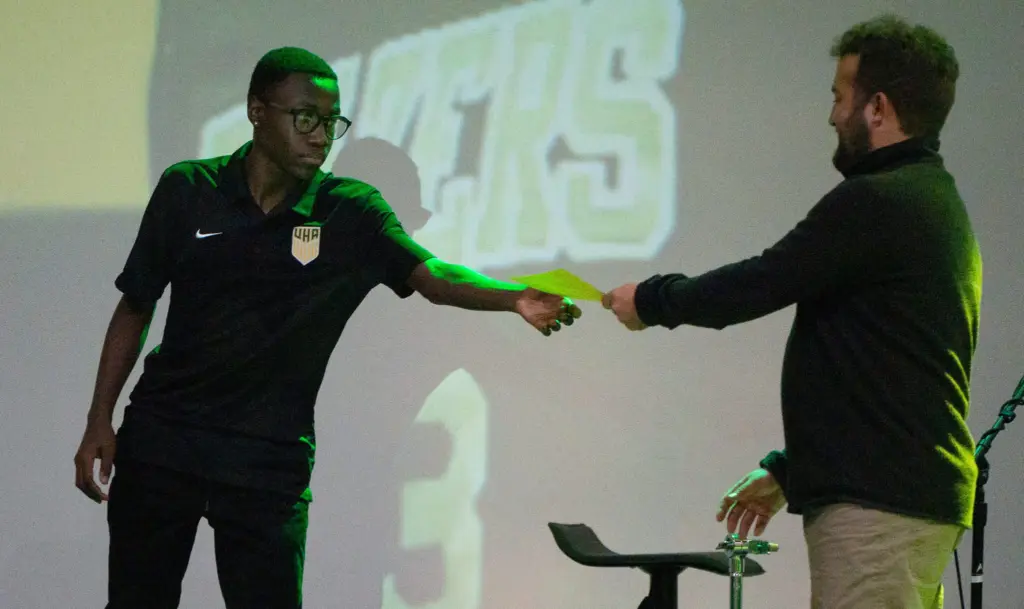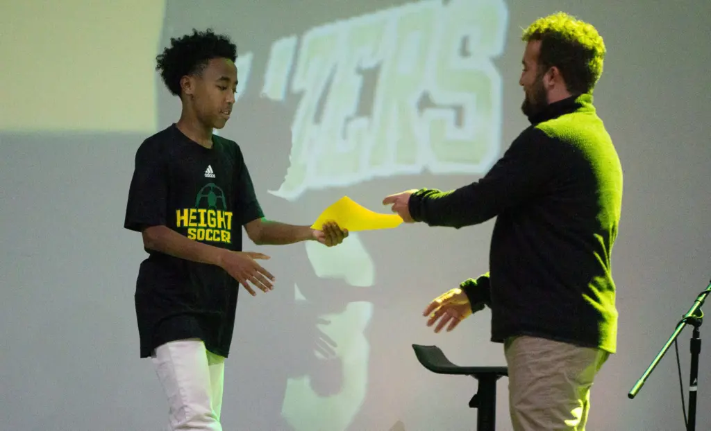 The University Heights Blazers soccer team celebrated their 18-7 season on Thursday night at a banquet at New Work Fellowship Church in Hopkinsville, KY. Food was enjoyed, followed by an awards ceremony for the best players on the team over the course of the season. Here were the awards:
