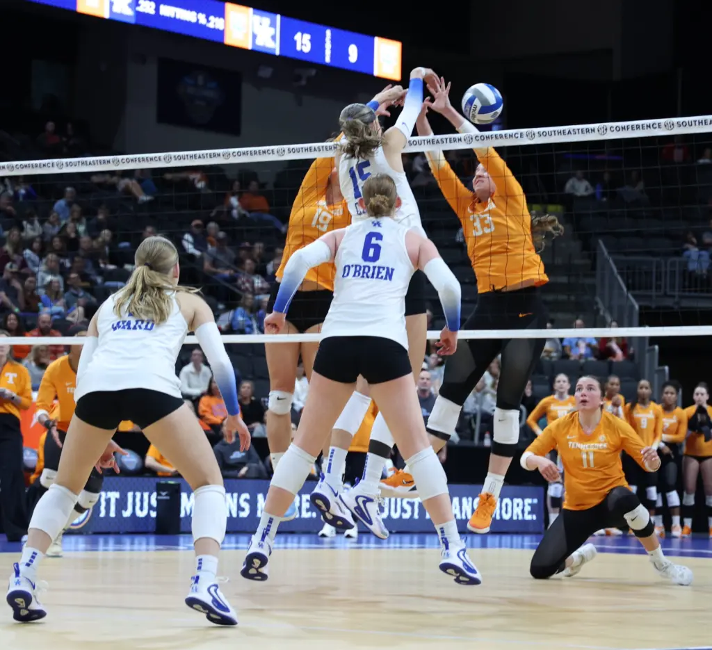 Tennessee took UK to four sets in Lexington in a regular-season match when it also won the opening set. The Vols started hot again behind the play of Hayden Kubik, who had 25 kills and 17 digs. However, the longer the match went, the more UK’s defense took over even though the Vols came close in sets two and four.