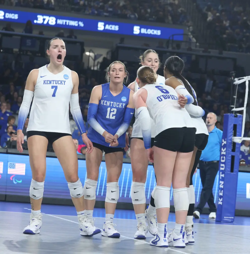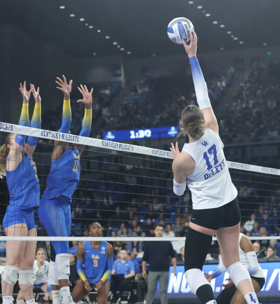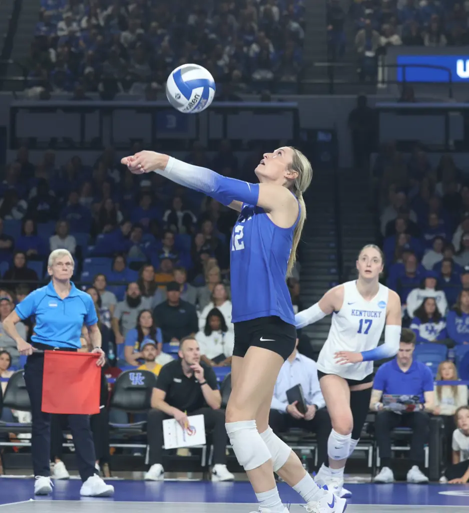 All-Americans Brooklyn DeLeye and Eva Hudson combined for 57 kills. They combined for 16 of UK’s 19 kills in the fourth set. DeLeye had a career-high 30 kills while Hudson had 27 and hit .463. Hudson also had 10 digs while DeLeye added eight digs.