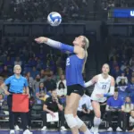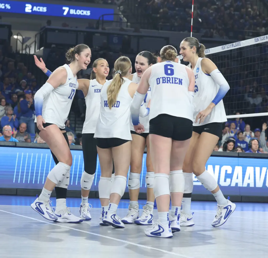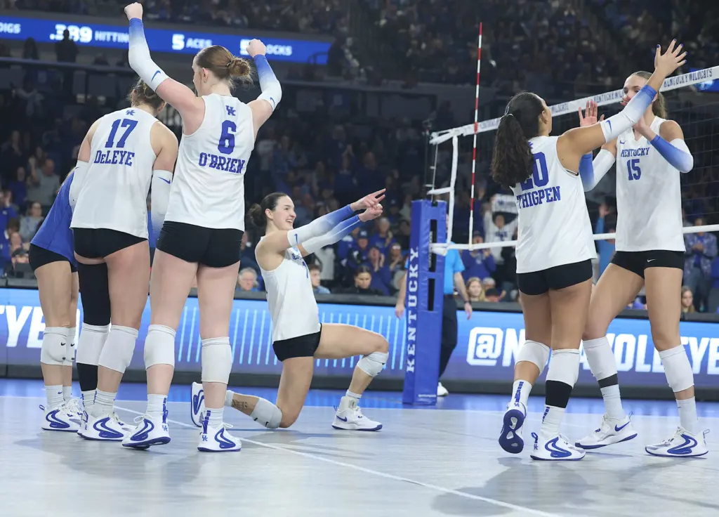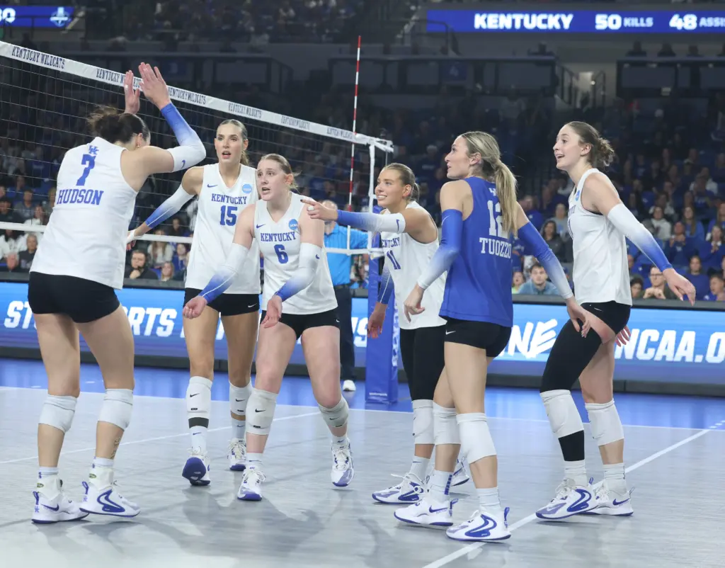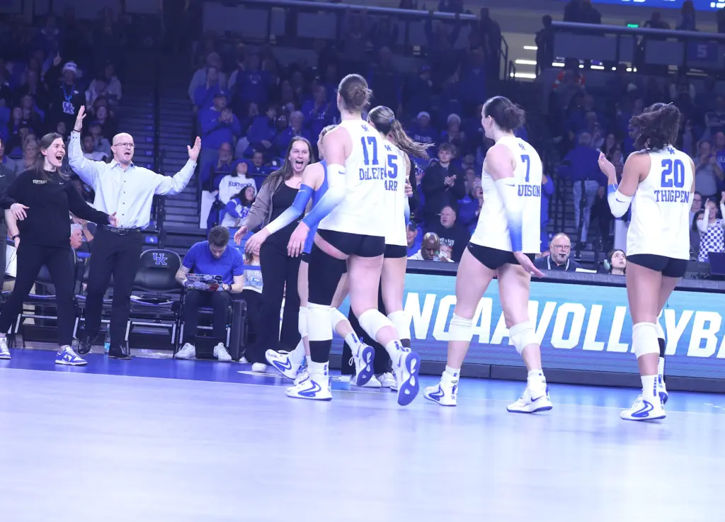 All-Americans Brooklyn DeLeye and Eva Hudson combined for 57 kills. They combined for 16 of UK’s 19 kills in the fourth set. DeLeye had a career-high 30 kills while Hudson had 27 and hit .463. Hudson also had 10 digs while DeLeye added eight digs.