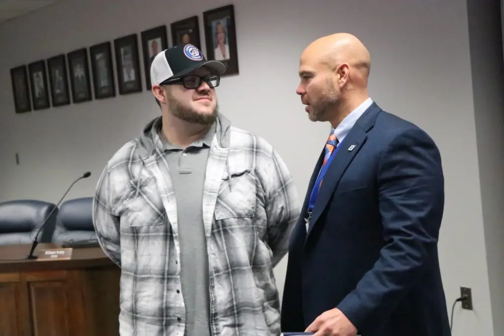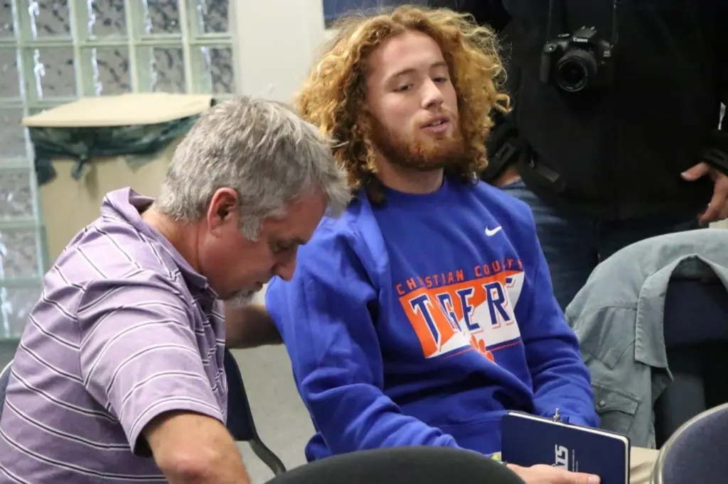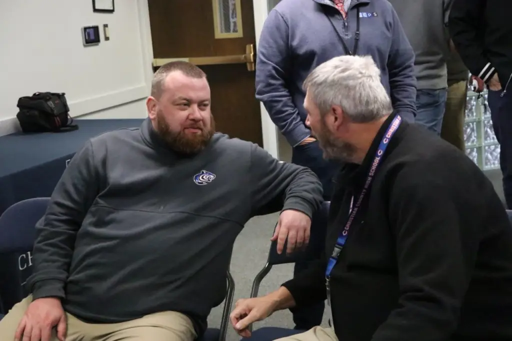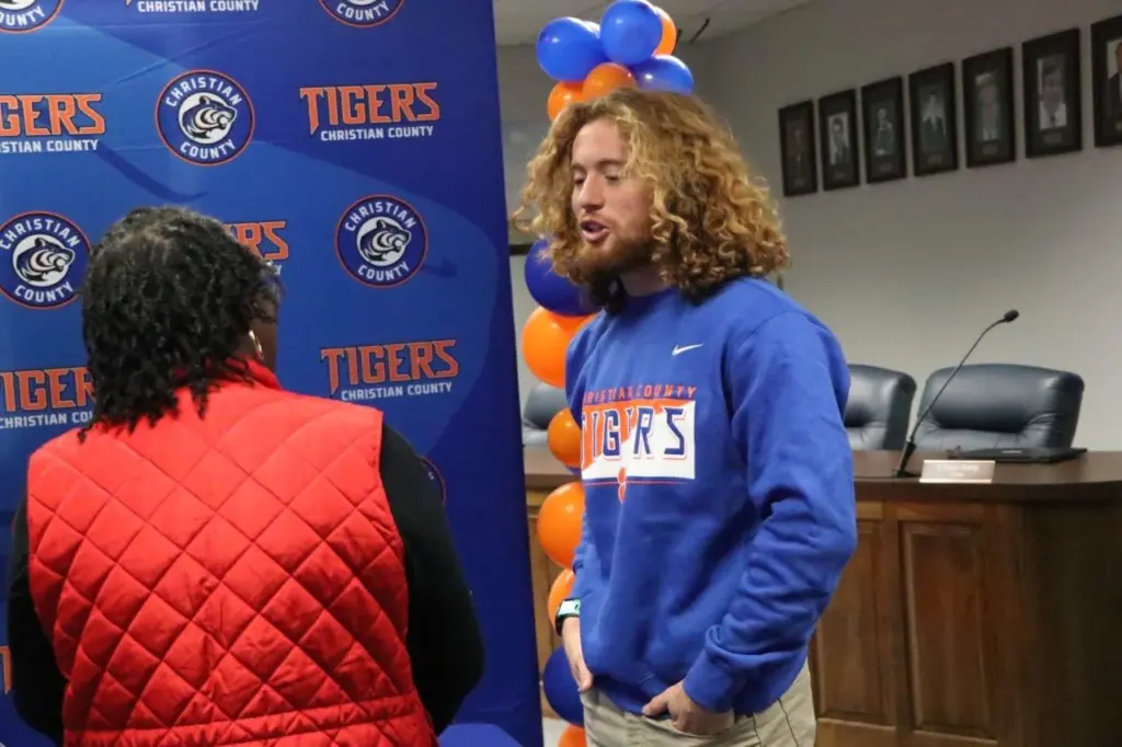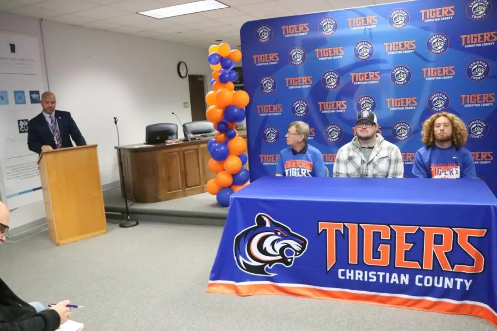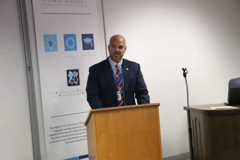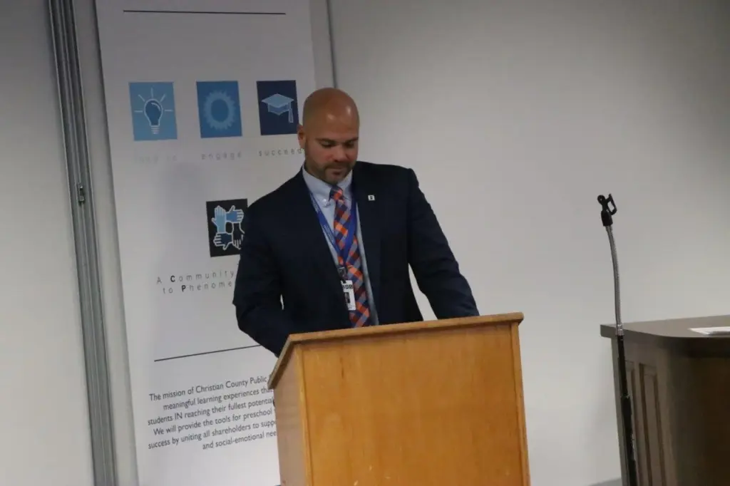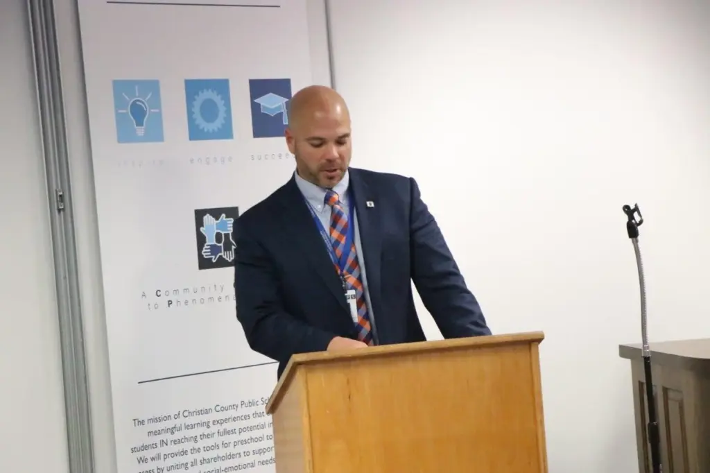 Three more fall sports coaching positions are now officially filled following a media conference at the Christian County Public Schools Boar Room Monday morning. School officials announced the selections of William Bryan as Boys Soccer Coach, Zach Hardison as Volleyball Coach, and Roger Volk as Cross Country Coach. YSE was there and got these pics from the announcements.