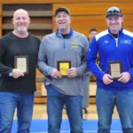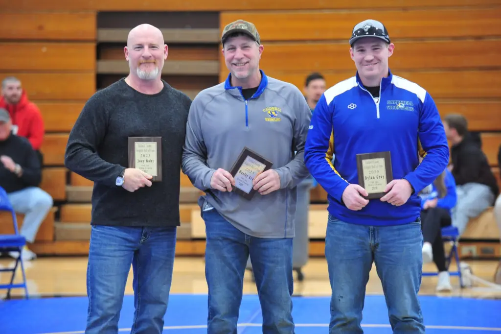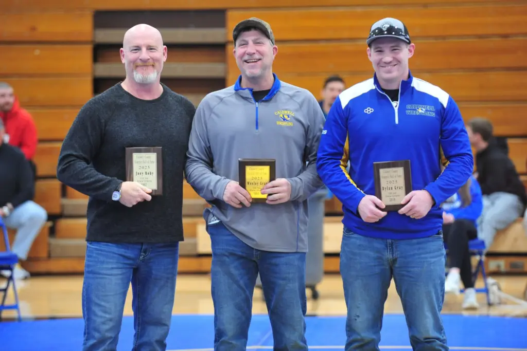 Joey Roby, Wesley Gray and Dylan Gray make up the newest class of the Caldwell wrestling Hall of Fame. They were recognized Saturday prior to the annual Armstrong Duals at the CAB gym.