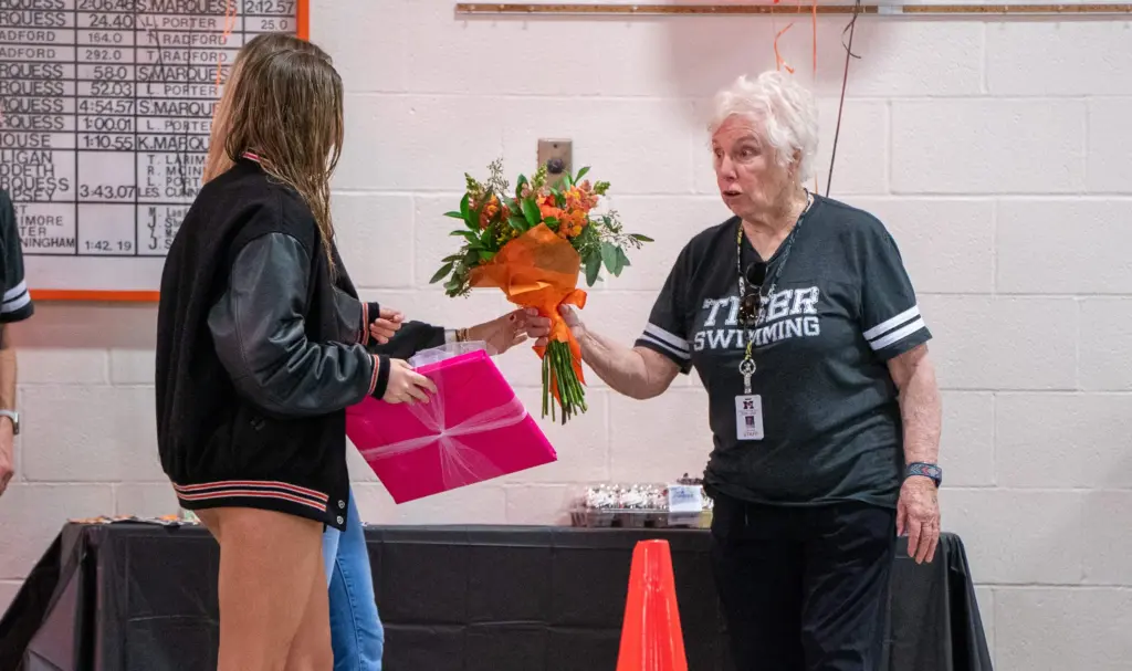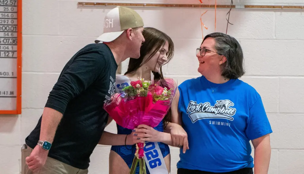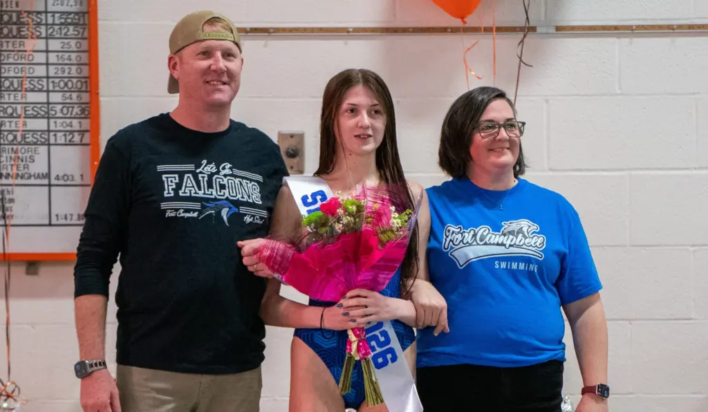 Before the three-team swim meet between Hopkinsville, Christian County, and Fort Campbell, Hopkinsville High School took the time to honor their senior as well as Fort Campbell’s. The seniors honored were Hopkinsville’s Grace Cansler, and Seth Puraty, Julieann Johnson, and Ava Roberts from Fort Campbell. YSE was there to get some shots from the ceremony.
