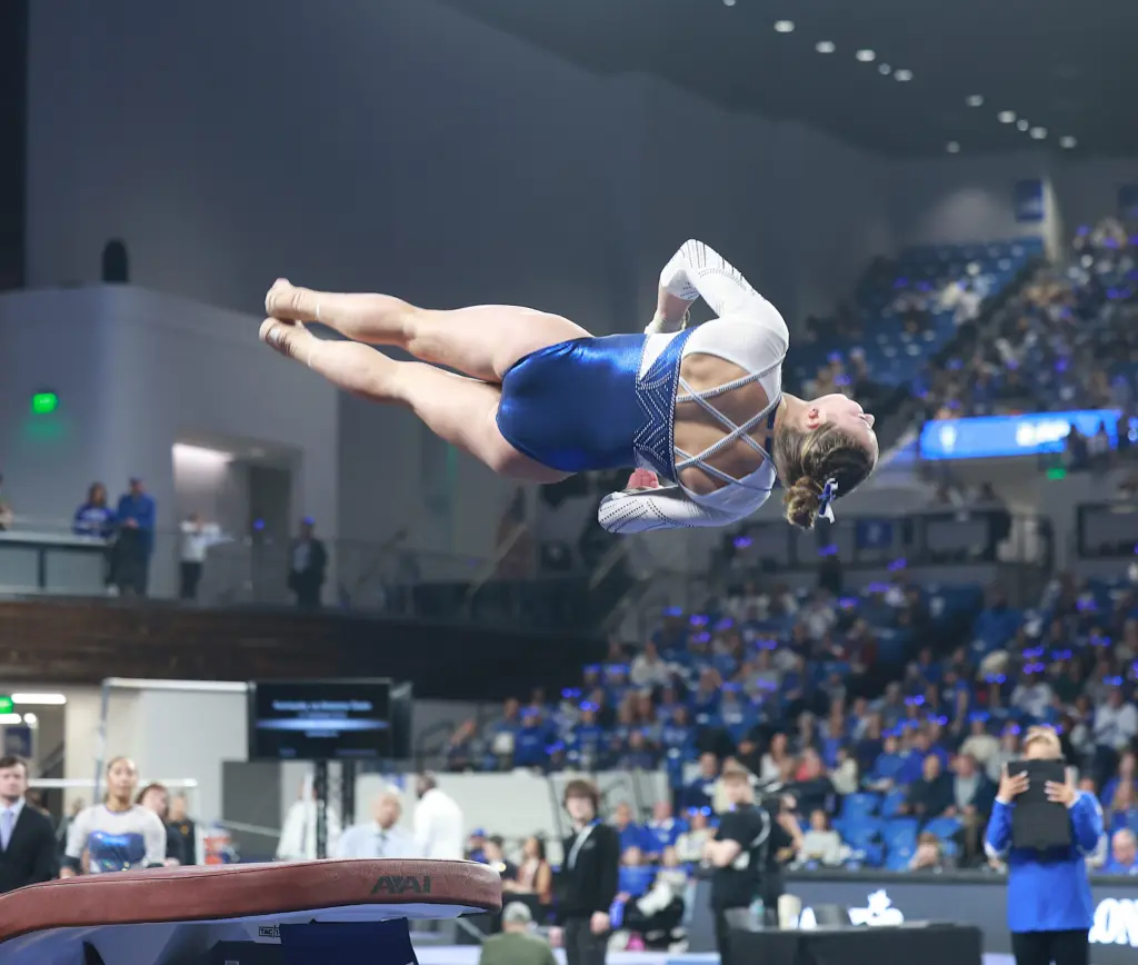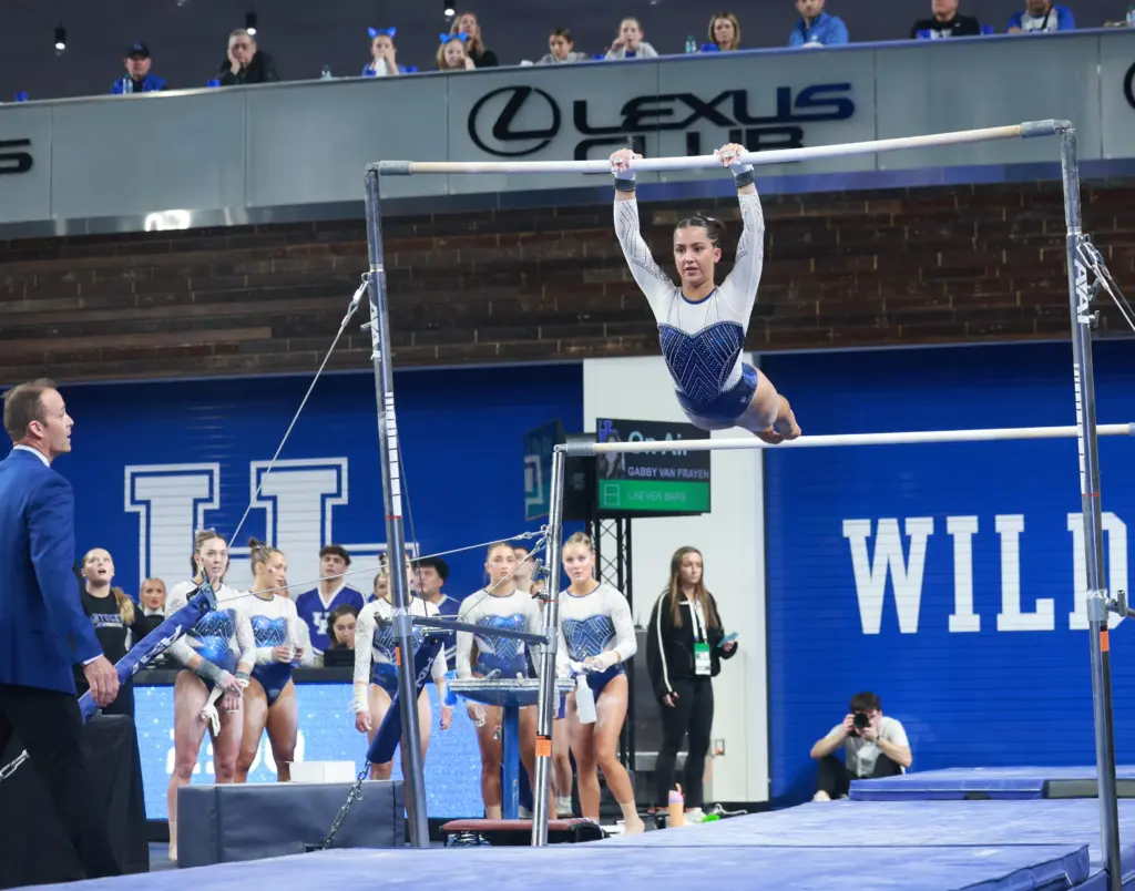 Sophomore Anna Flynn Cashion claimed the vault title for the second straight meet also and matched her career best with a 9.950. That helped UK start with a 49.250 on vault, the team’s best score of the meet. Freshman Addisyn Hofseth had a career-high 9.775 before Cecily Rizo hit a season-high 9.850 Callie Gardner delivered another season-high at 9.775 and Ryan Noonan a 9.825 before Rodriguez scored a season-high 9.850.