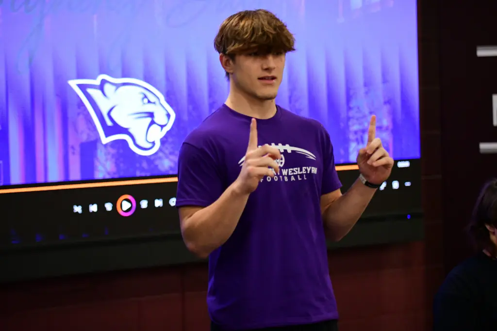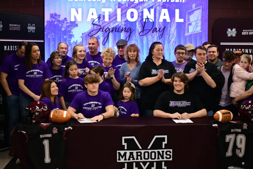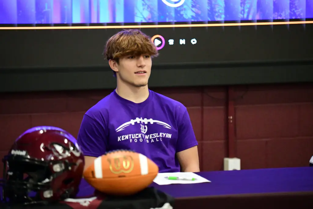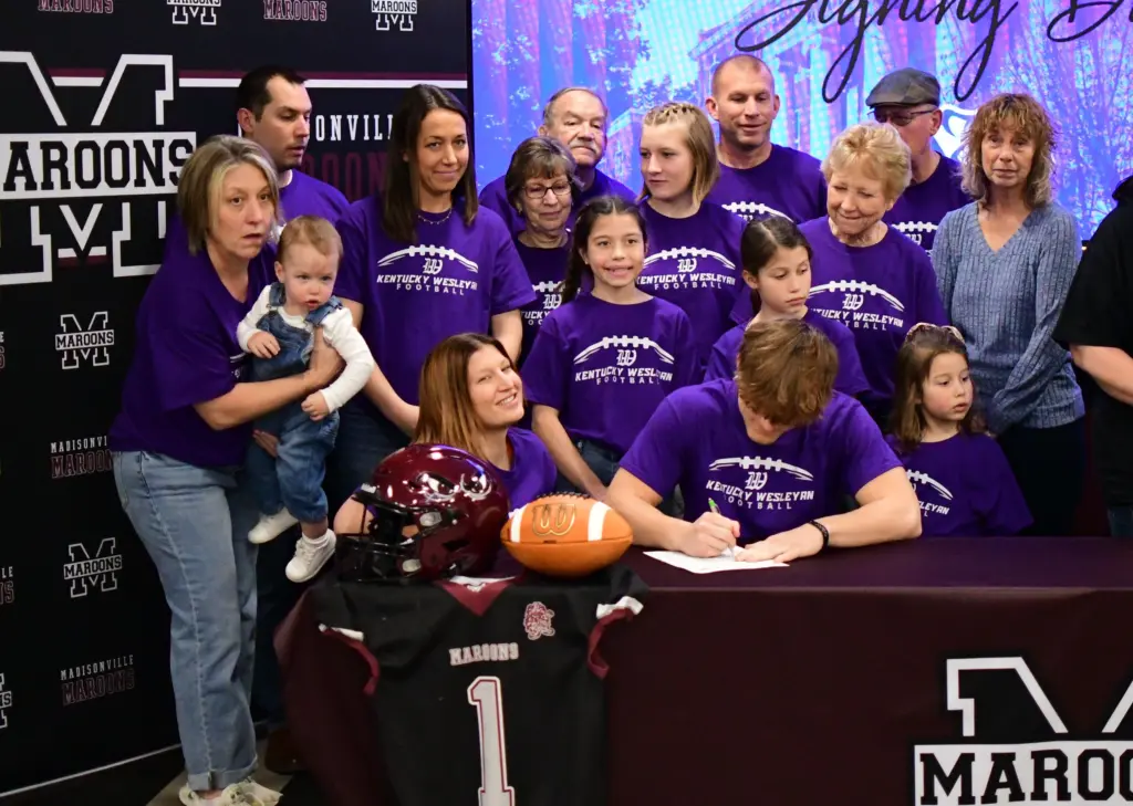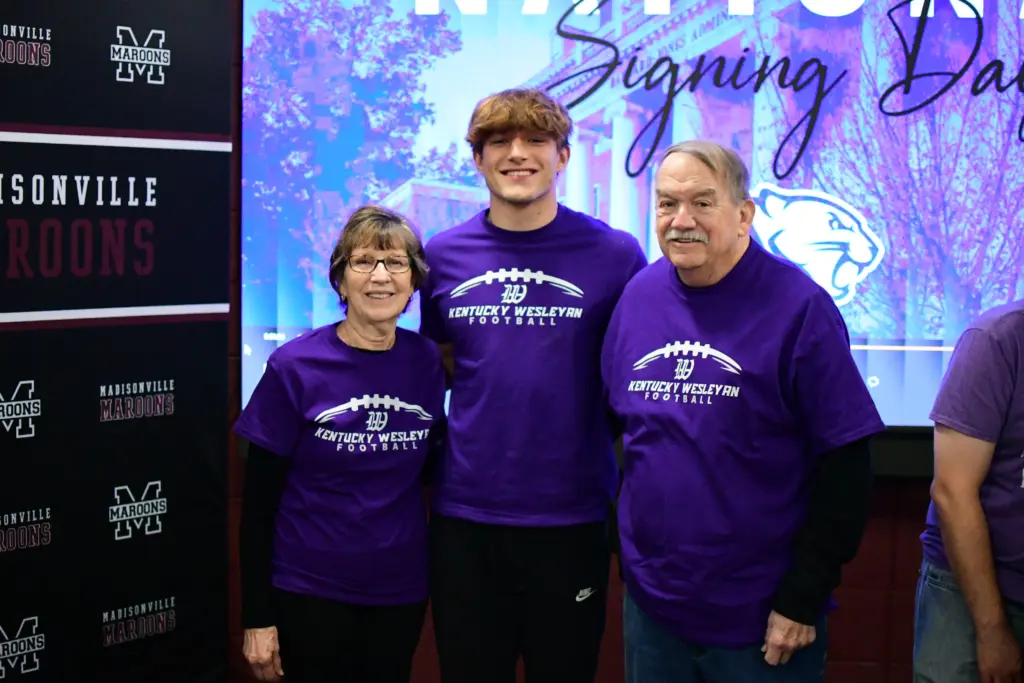 The fabric he has woven will now include some purple, as the Madisonville-North Hopkins senior signed on Wednesday to play college football at Kentucky Wesleyan College.
