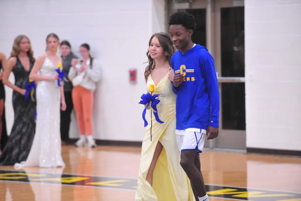 The Homecoming ceremony included Watson and escort Jack Roach, senior queen candidate Aubrey Lancaster and escort Zy Rollins, senior queen candidate Audrianna Springfield and escort Kese Wilson, junior attendant Karmen Beasley and escort Jaden Boyd, sophomore attendant Karoline White and escort Brody Kirk, and freshman attendant Ellie Francis and escort Yvenson Thomas.