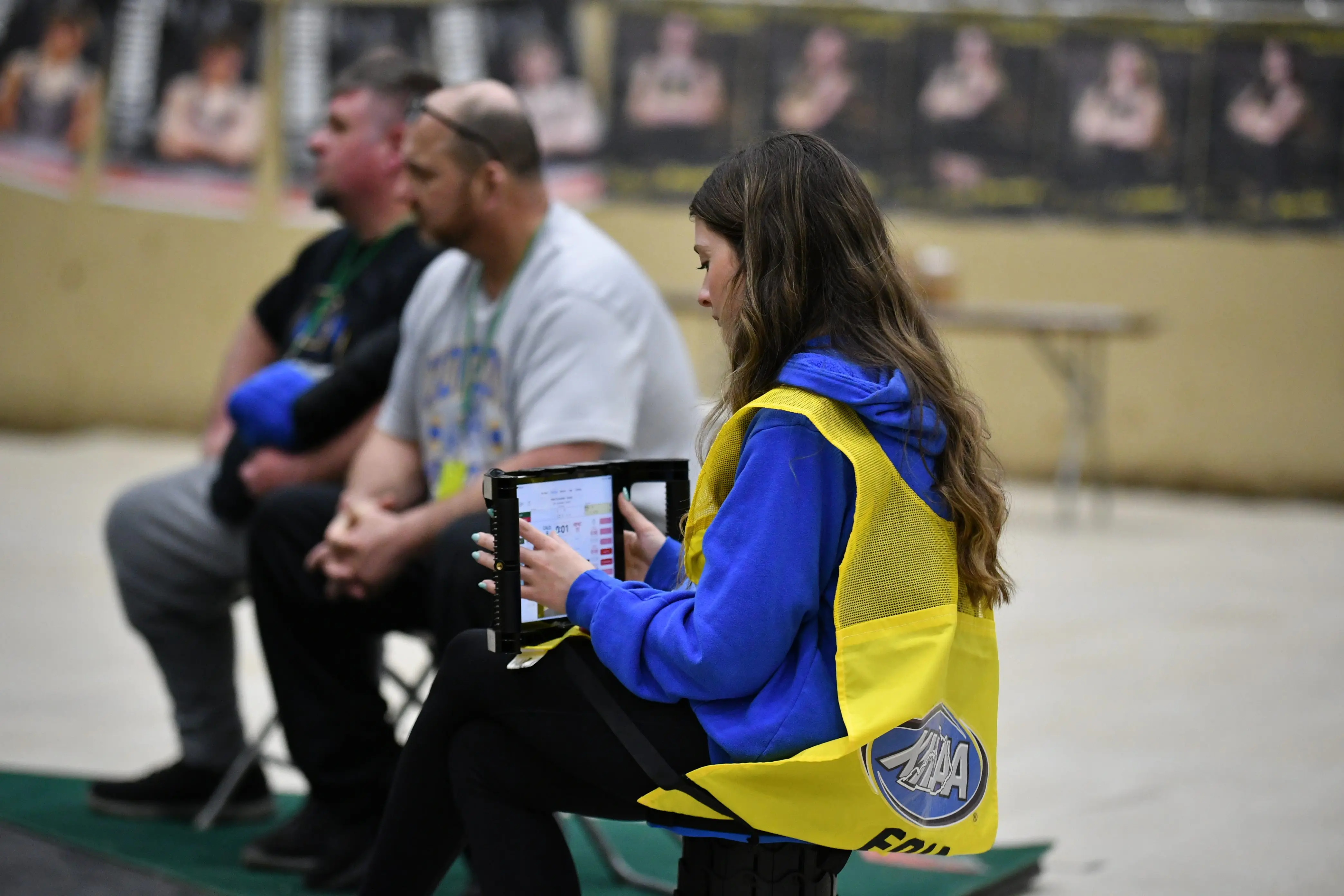 Equipped with a pop stool and an iPad, Hannah not only videoed every match, but she kept real-time stats and scoring through the Takedown app.