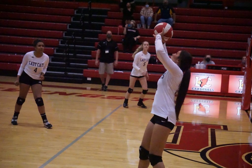 Trigg won its first set in four matches with a 29-27 result in the opener, before cruising to a 25-12 victory in the second. Livingston put up a fight in the third, but the Lady Wildcats closed out the match with a 25-22 win.