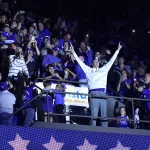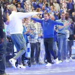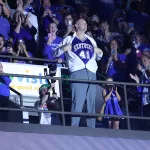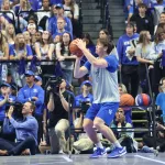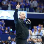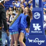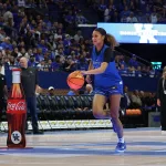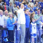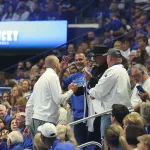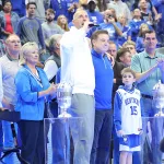 Kentucky football coach Mark Stoops also made an appearance for the first time. The innovative LED court was transformed into a football field as he spoke to the crowd.