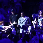 As Perry and the rest of his teammates were introduced, they walked through different sections of the crowd during the introductions.